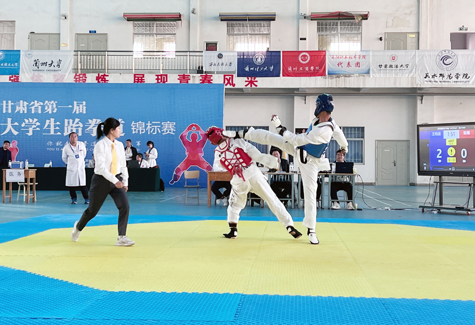 近日,由省跆拳道拳击运动协会主办、兰州工商公司承办、省老员工跆拳道协会协办的甘肃省第一届老员工跆拳道锦标赛在兰州工商公司落下帷幕。全省有15所高校的16支代表队共200余名运动员参赛,比赛分阳光组和体育组,有品势、竞技两个大项共16个小项。公司14名学子参加了体育组的比赛。